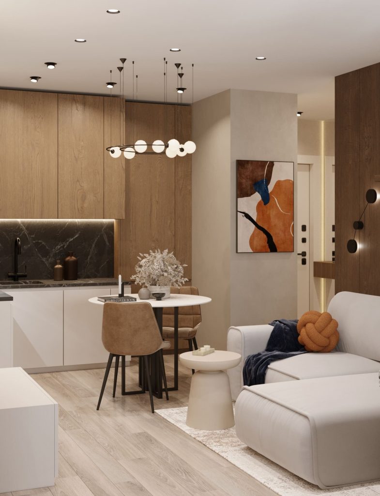 Квартира в бежевых оттенках с терракотовыми акцентами