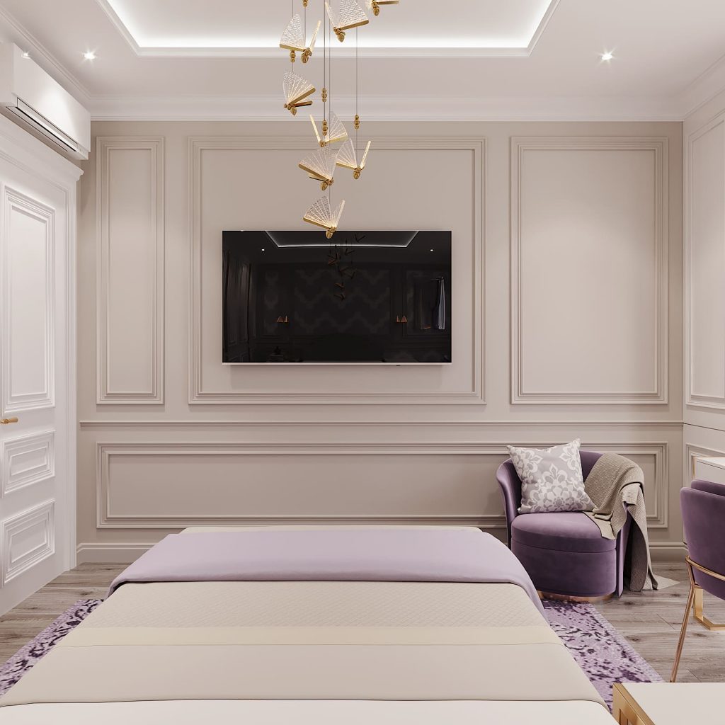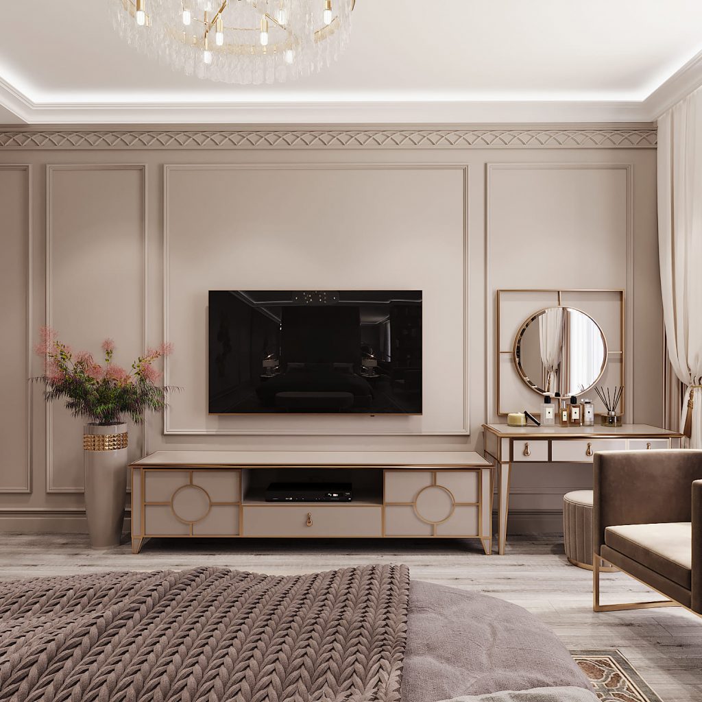 Дизайн-проект четырехкомнатной квартиры в стиле современная классика с сочетанием молочных