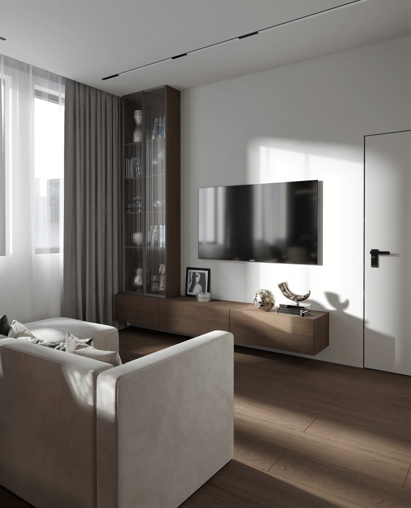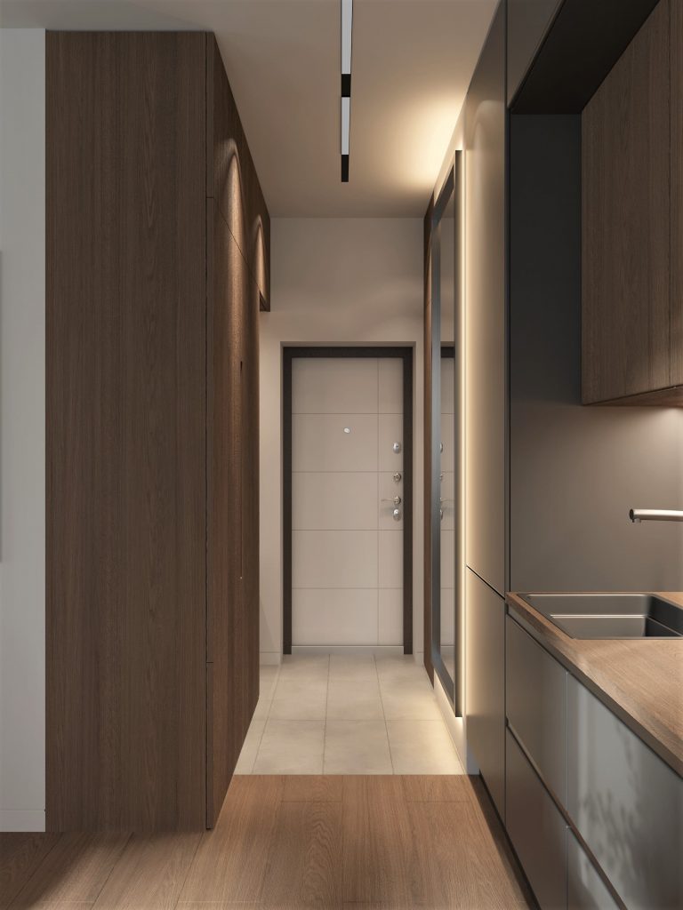 Дизайн-проект этих апартаментов разрабатывался для молодой девушки 20 лет. Потому как в этом возрасте очень много интересов и отсутствует желание тратить свое драгоценное время на второстепенное, например, лишнюю уборку, важно было, чтобы интерьер получился в наибольшей степени современным, минималистичным, практичным и функциональным.