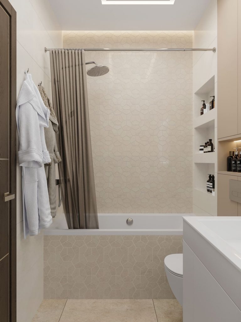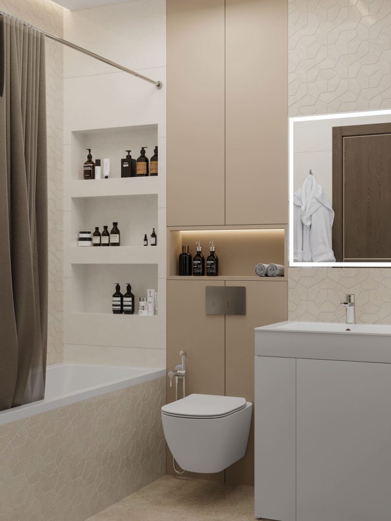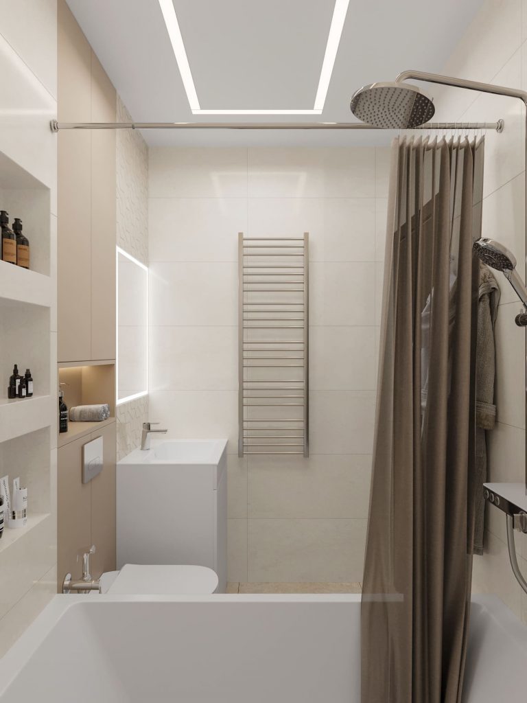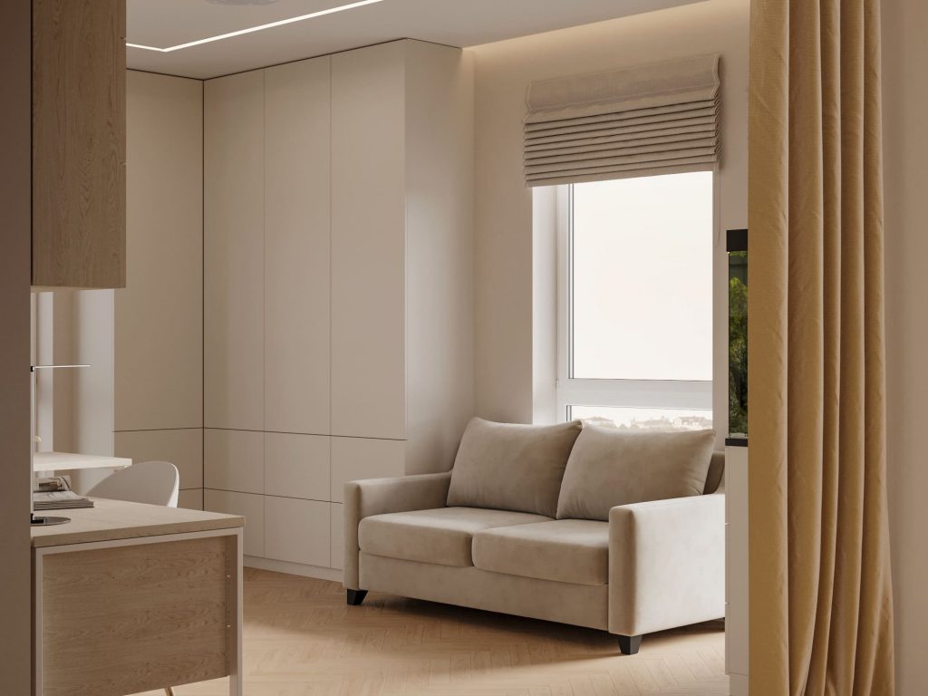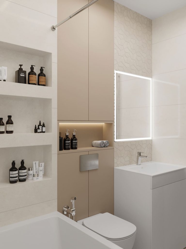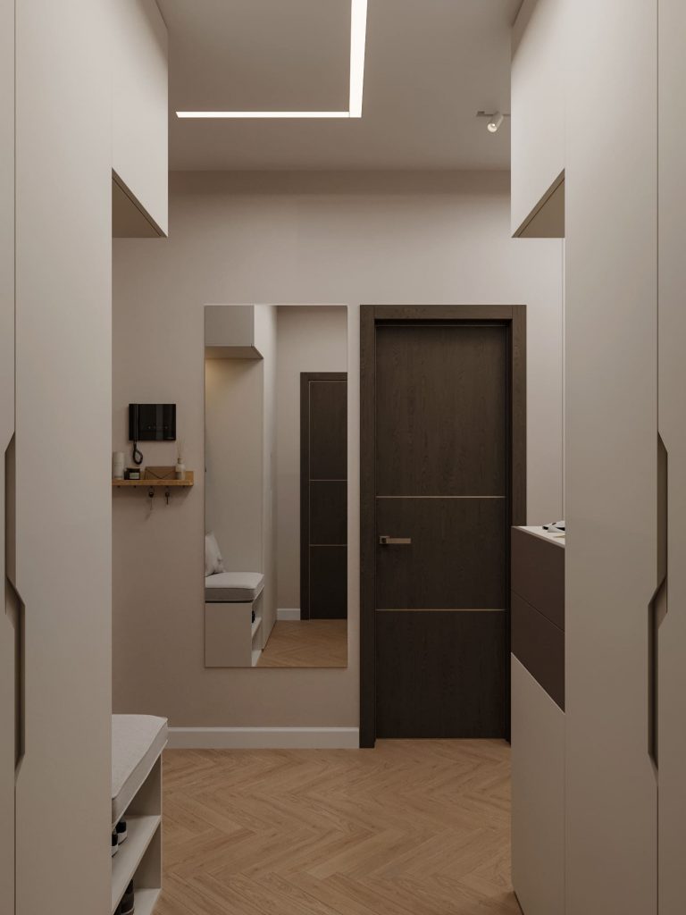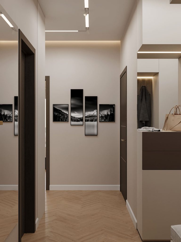 Квартира с перепланировкой в современном стиле в бежевых тонах