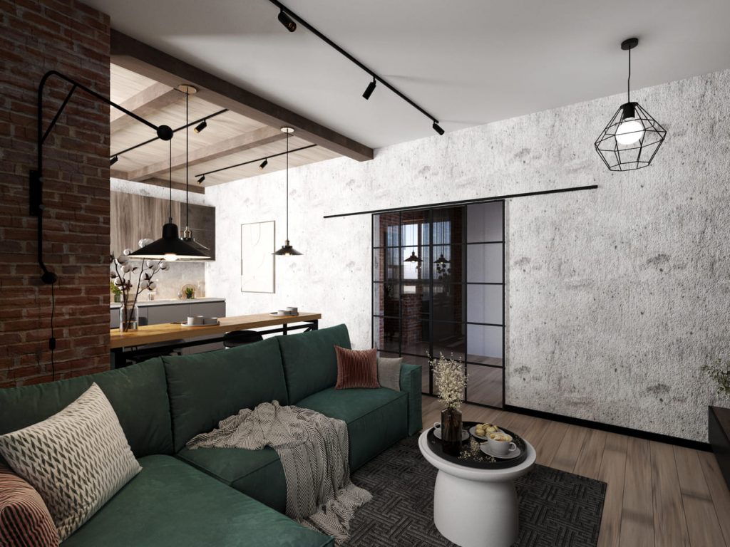 Практичная и комфортная квартира для семьи с характерными акцентами в стиле лофт