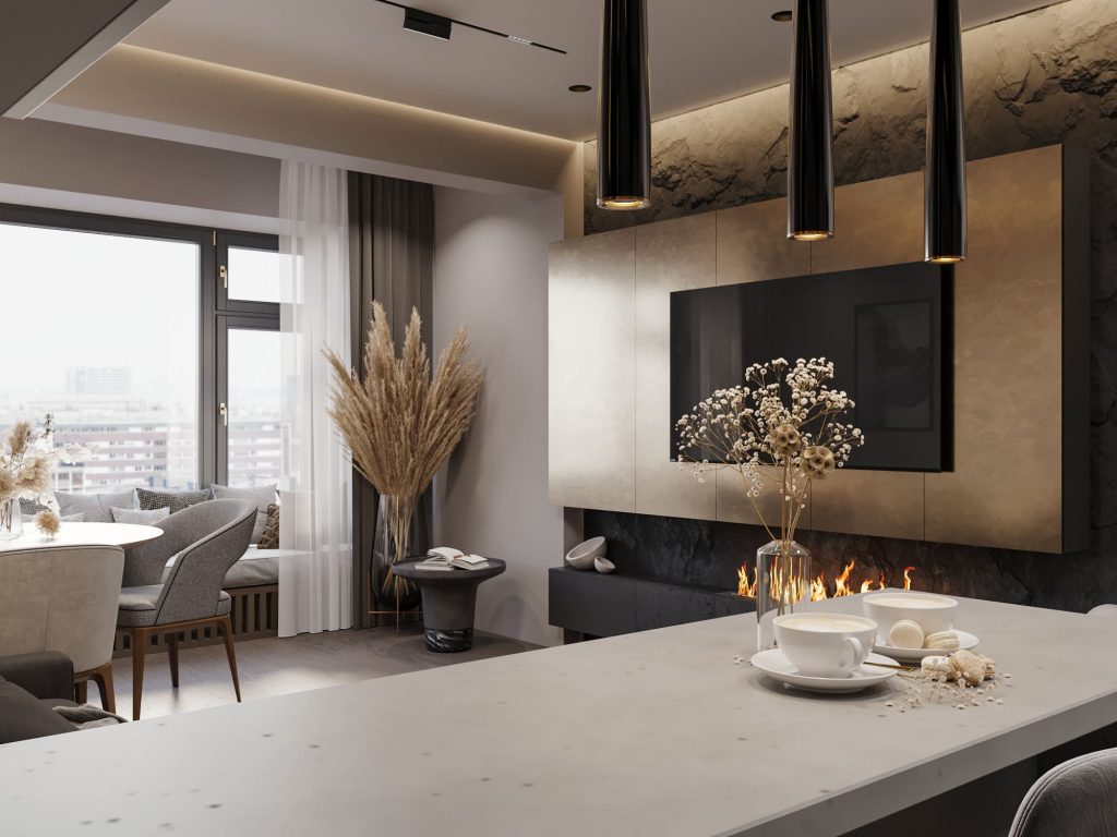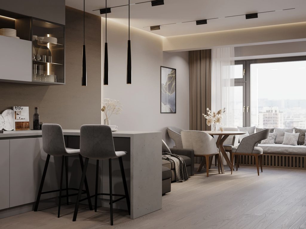 Современная квартира в серо-бежевых тонах с элементами брутальности