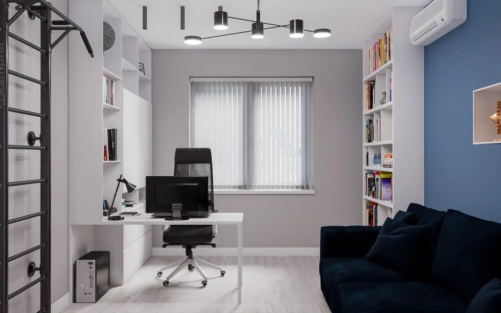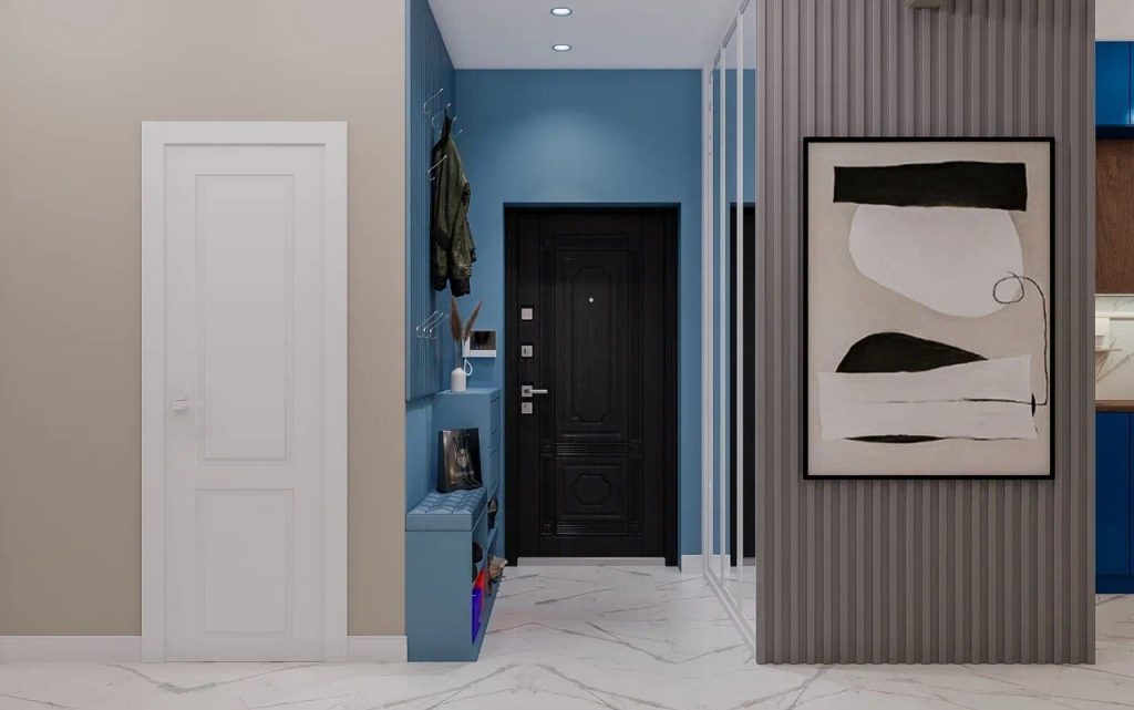 Прачечная добавлена в проект отдельно по просьбе заказчицы. Она содержит только необходимый минимум - встроенные стиральную и сушильную машины, откидные полки для хранения моющих средств, утюга; под ними расположены крючки для вешалок для одежды и прищепок; также, имеется откидная сушилка и отдельно стоящая сушилка.