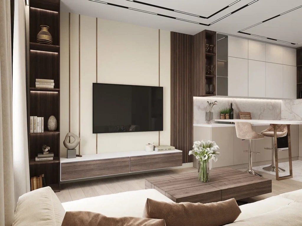 Трехкомнатная квартира в бежево-шоколадных оттенках в стиле минимализм