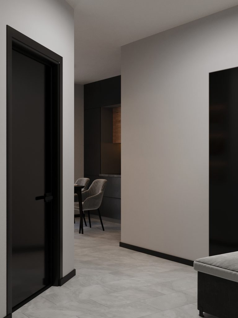 Современная квартира в глубоких серых оттенках с элементами дерева