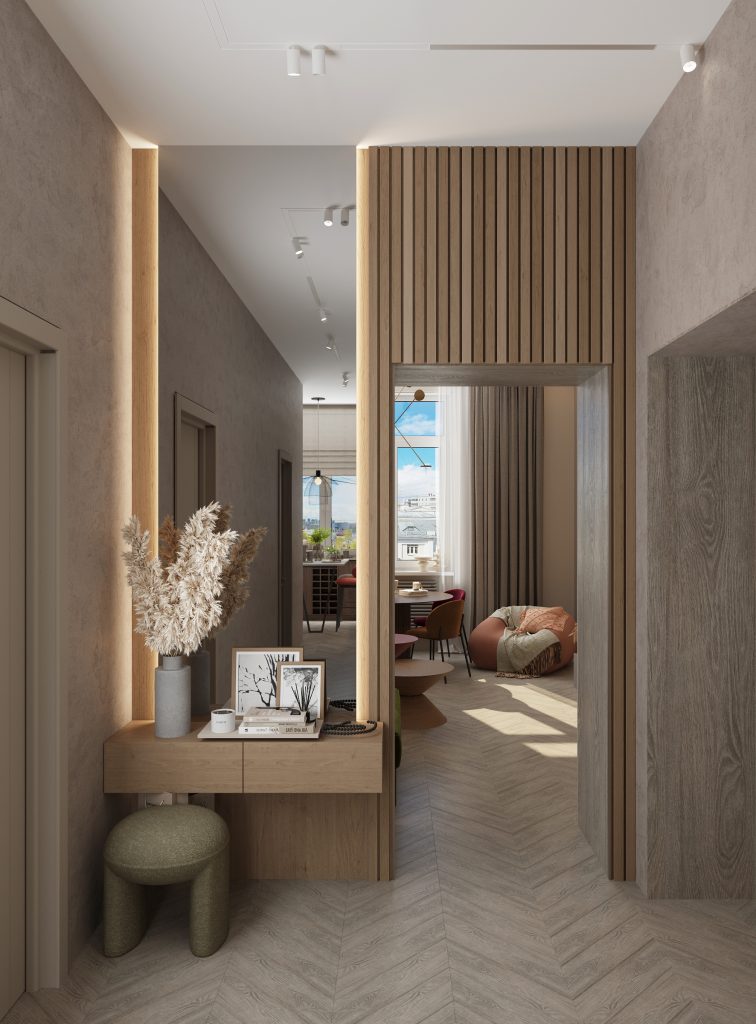 Четырехкомнатная квартира в стилистических направлениях эко и минимализм
