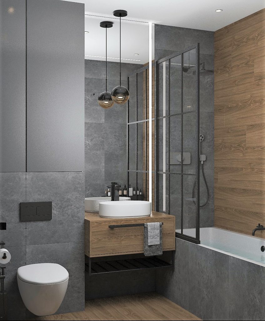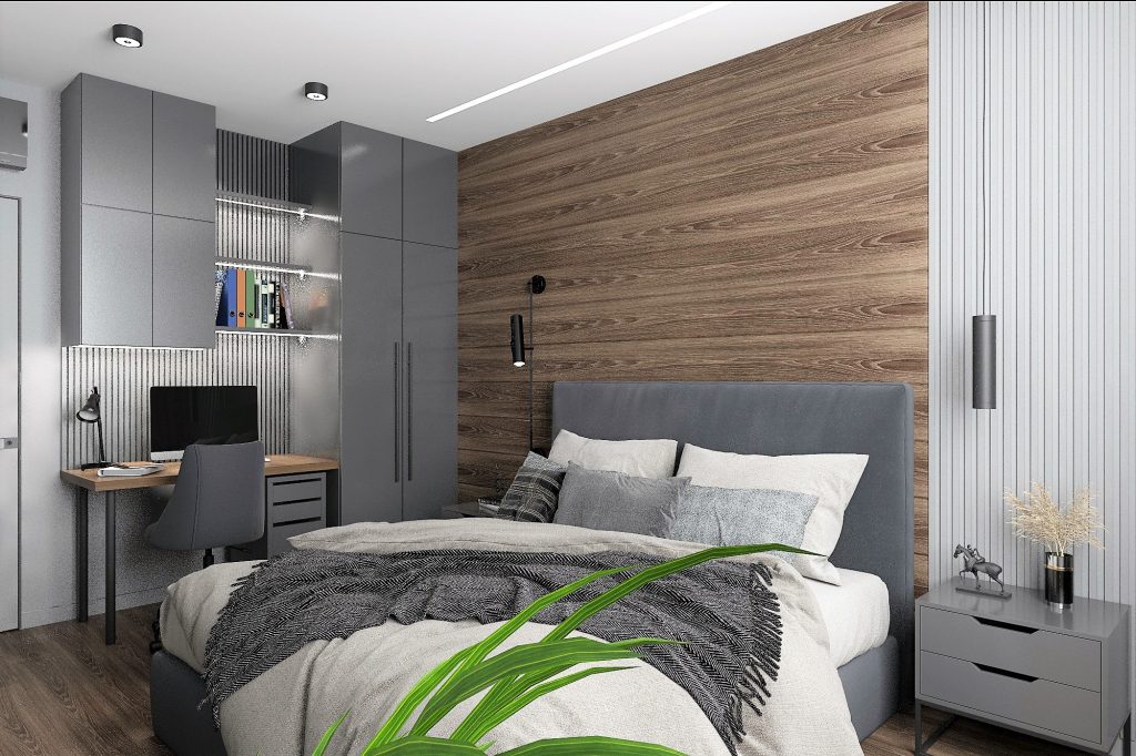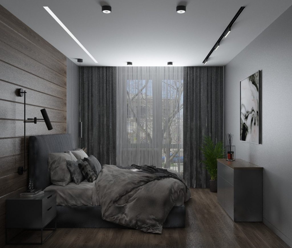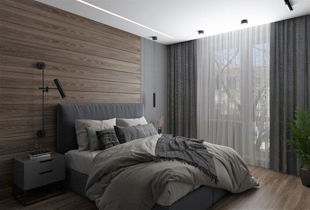 Евродвушка в современном стиле в серо-коричневых оттенках