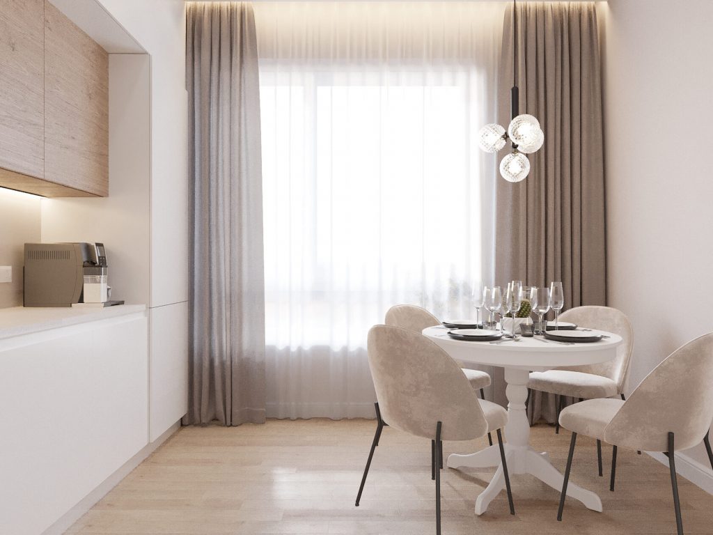Этот интерьер — про свет, покой и функциональность без лишнего. Заказчик хотел минимализм, но с тёплым характером: светлые тона, закрытые поверхности, удобство в каждом решении и немного философии Фен-шуй.