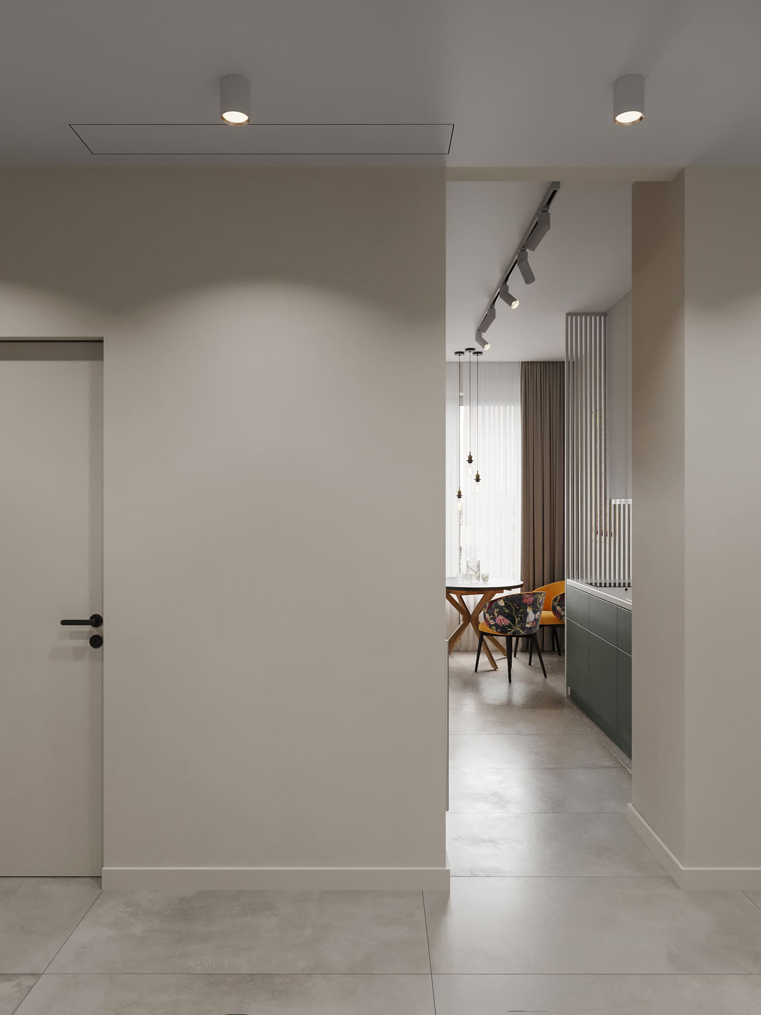 В основу стилистики легли тёплые натуральные оттенки: песочный и оливковый. Личные вещи заказчиков — картины, стулья, лампы — органично вписаны в интерьер, добавив ему индивидуальности и уюта.