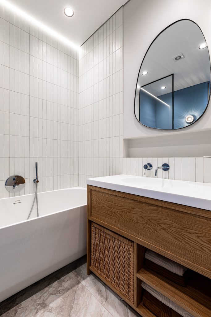 Ремонт евротрешки в новостройке по индивидуальному дизайн-проекту с меблировкой и изготовлением мебели от Domeo, с прихожей, кухней-гостиной, мастер-спальней, детской и двумя санузлами