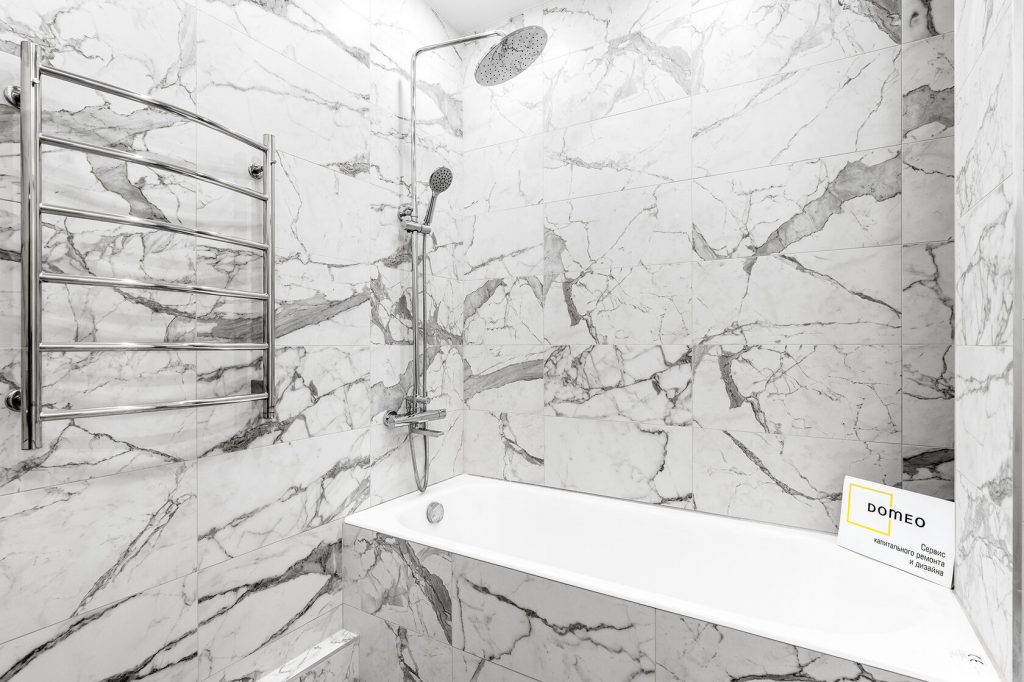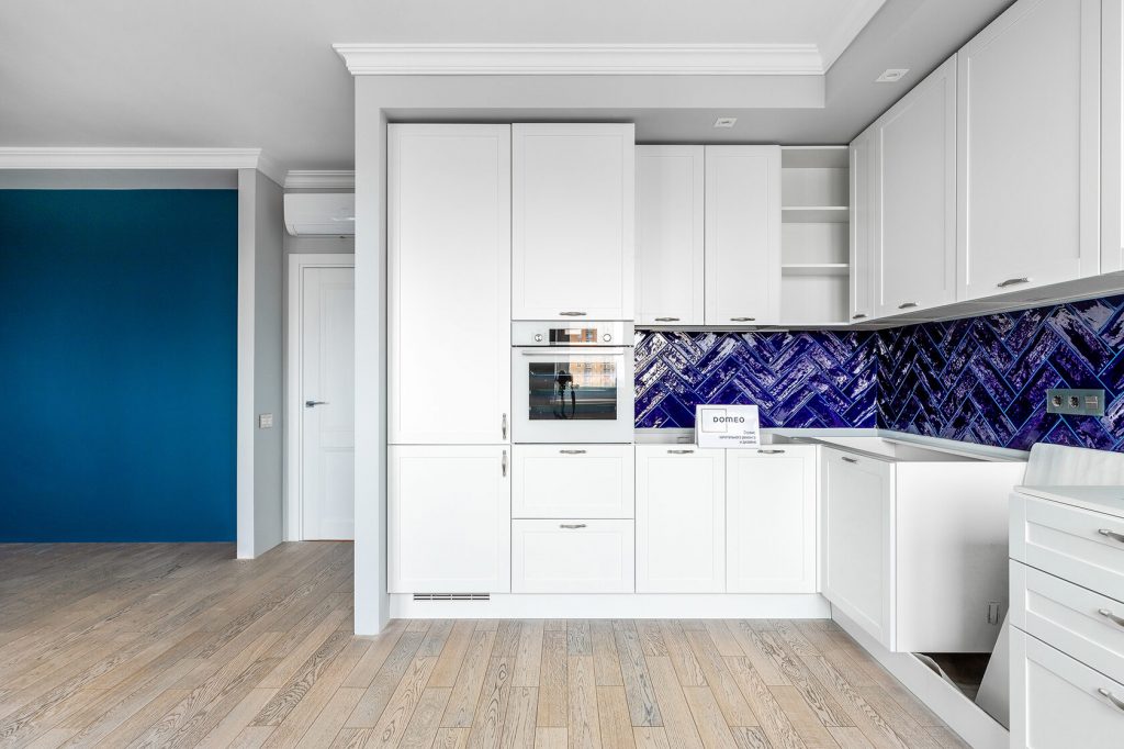 Ремонт двухкомнатной квартиры с меблировкой и изготовлением мебели от Domeo, в светлых тонах с добавлением яркой отделки, с прихожей, кухней-гостиной, спальней и санузлом