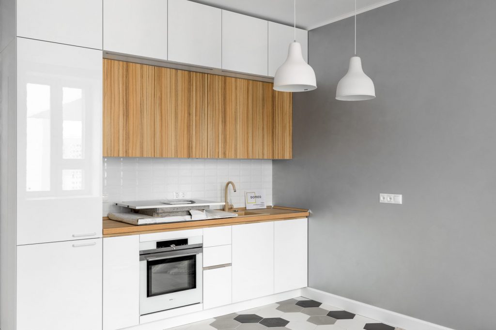 Ремонт однокомнатной квартиры, с изготовлением мебели от Domeo, с интерьером в миксе скандинавского и современного стилей, с прихожей, кухней, спальней и санузлом
