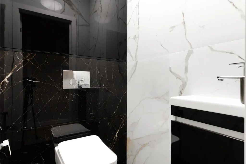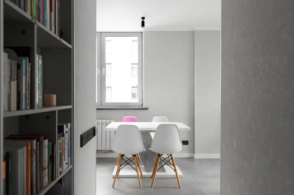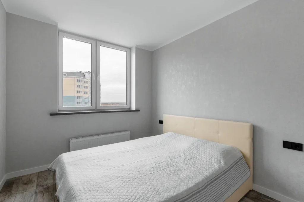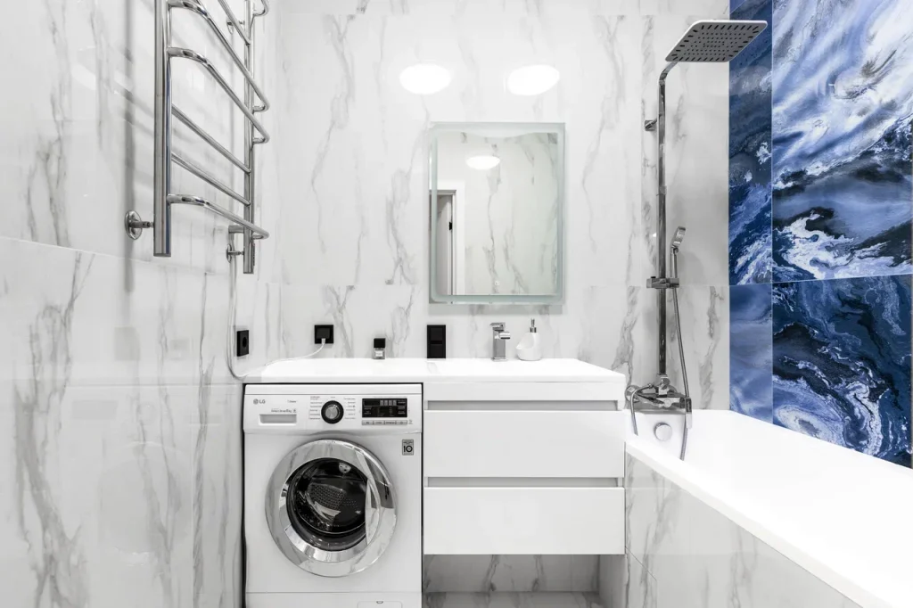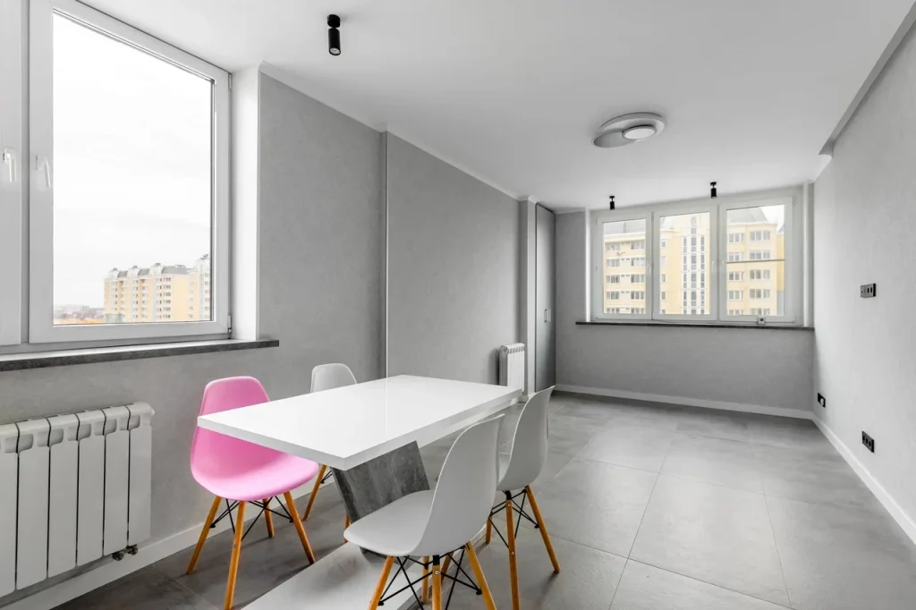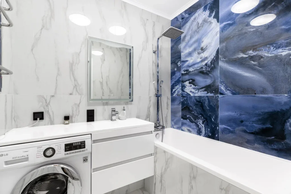 Ремонт двухкомнатной квартиры с меблировкой и изготовлением мебели от Domeo, для семейной пары с ребенком 3-х лет, с интерьером, выполненным в серых тонах, с прихожей, кухней-гостиной, мастер-спальней, детской комнатой и двумя санузлами