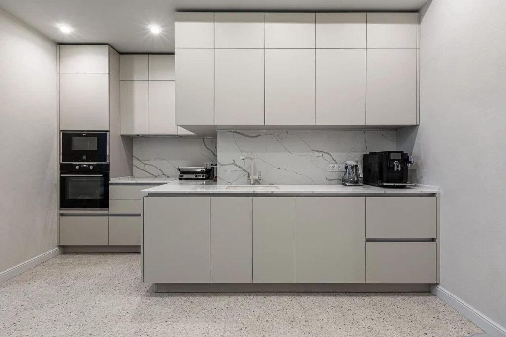 Ремонт пятикомнатной квартиры с меблировкой и изготовлением мебели от Domeo, для большой семьи, с интерьером преимущественно в спокойных оттенках, с прихожей, кухней-гостиной, гостевой комнатой, мастер-спальней, двумя детскими комнатами для мальчика и для девочки, двумя гардеробными и двумя санузлами