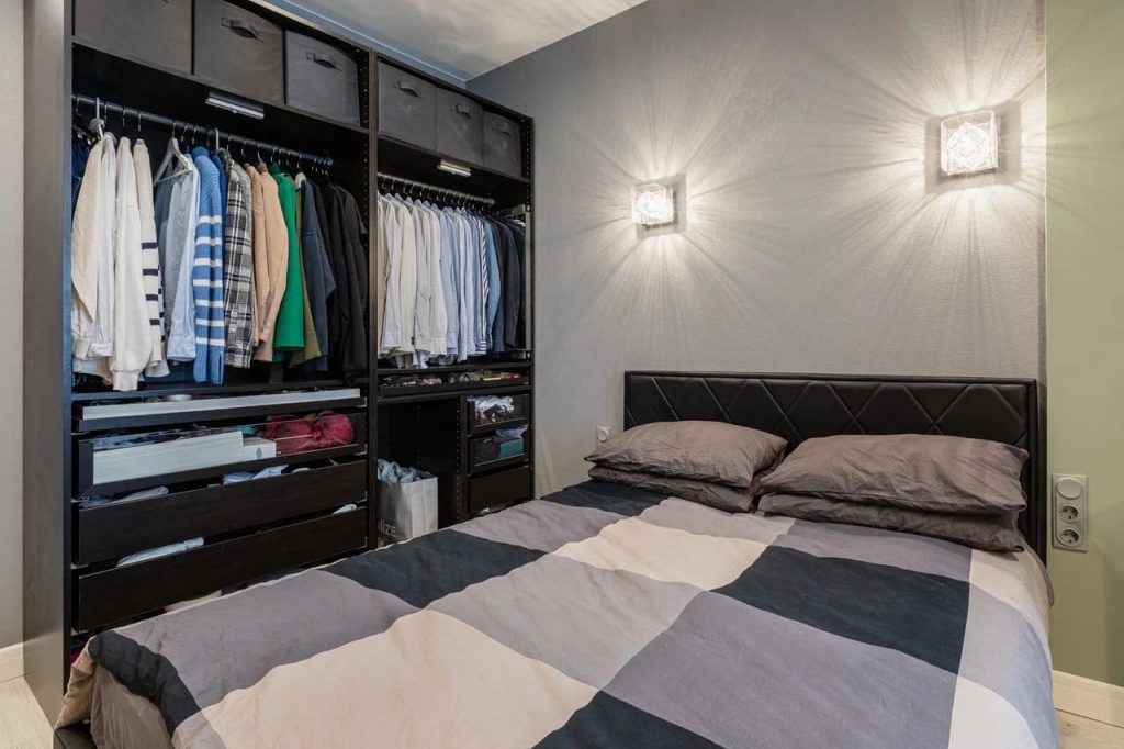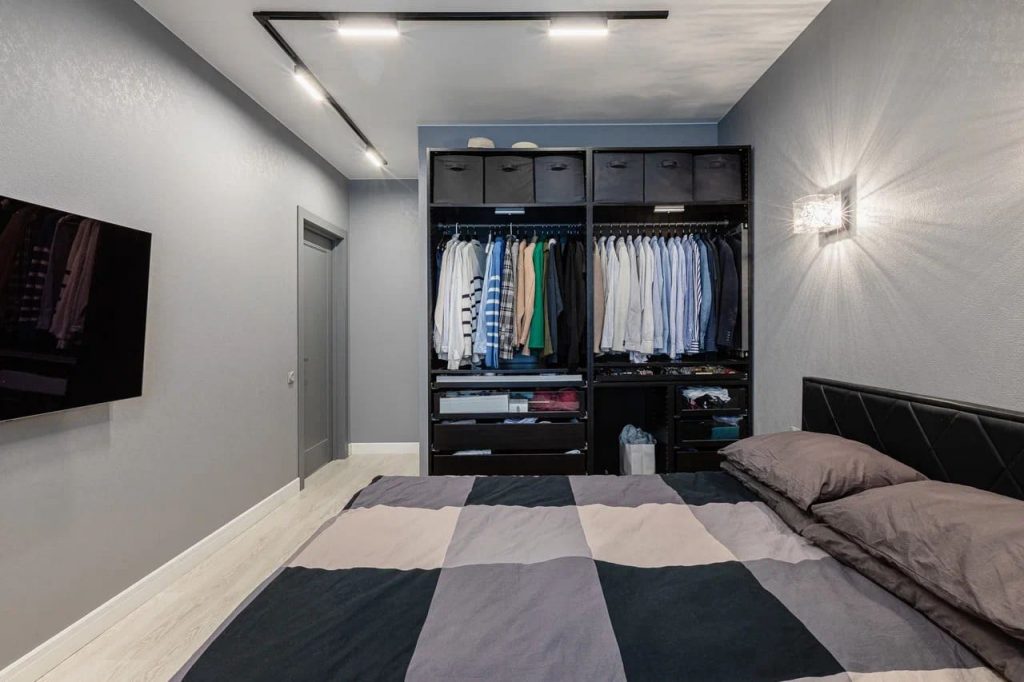 Ремонт небольшой евродвушки с меблировкой и изготовлением мебели от Domeo, с продуманным дизайном интерьера и необычной планировкой, с прихожей, кухней-гостиной, спальней, гардеробной и санузлом