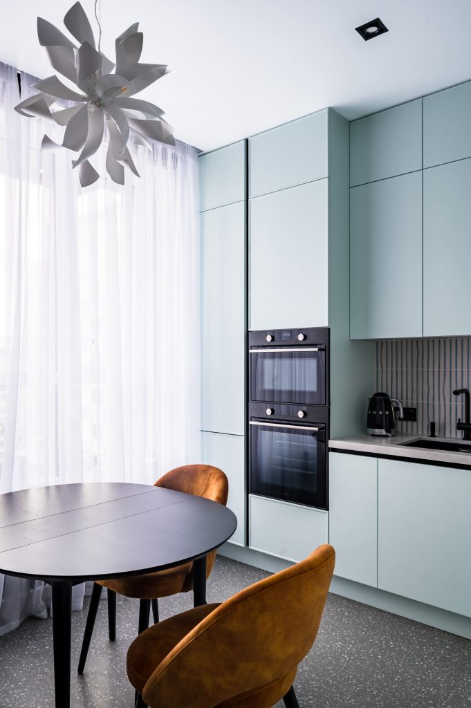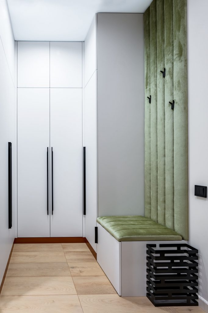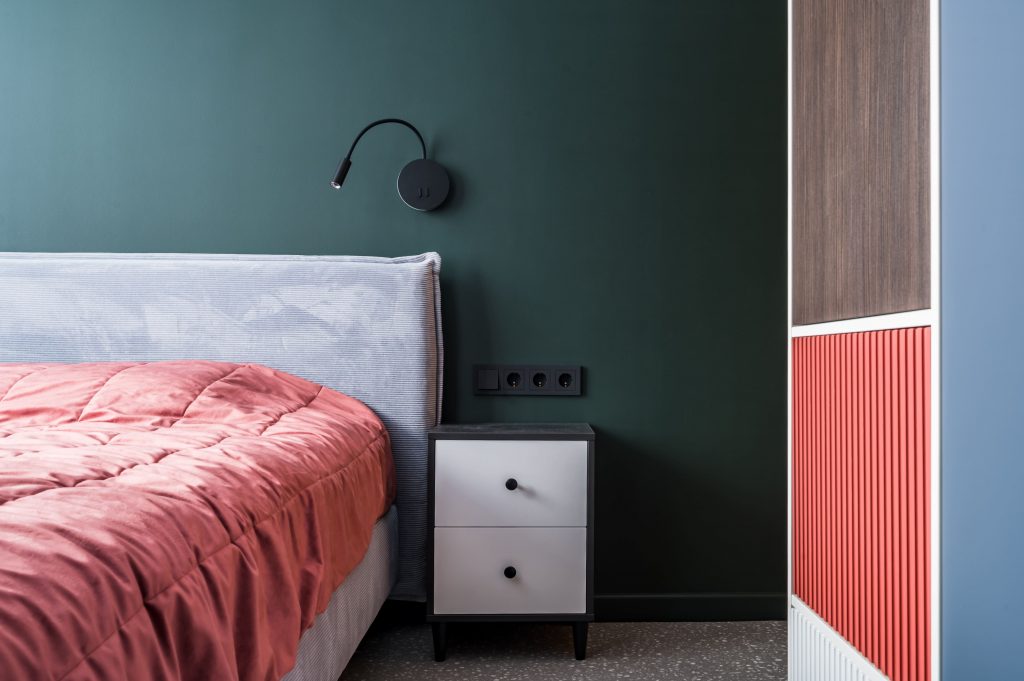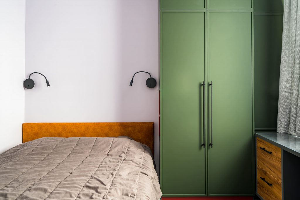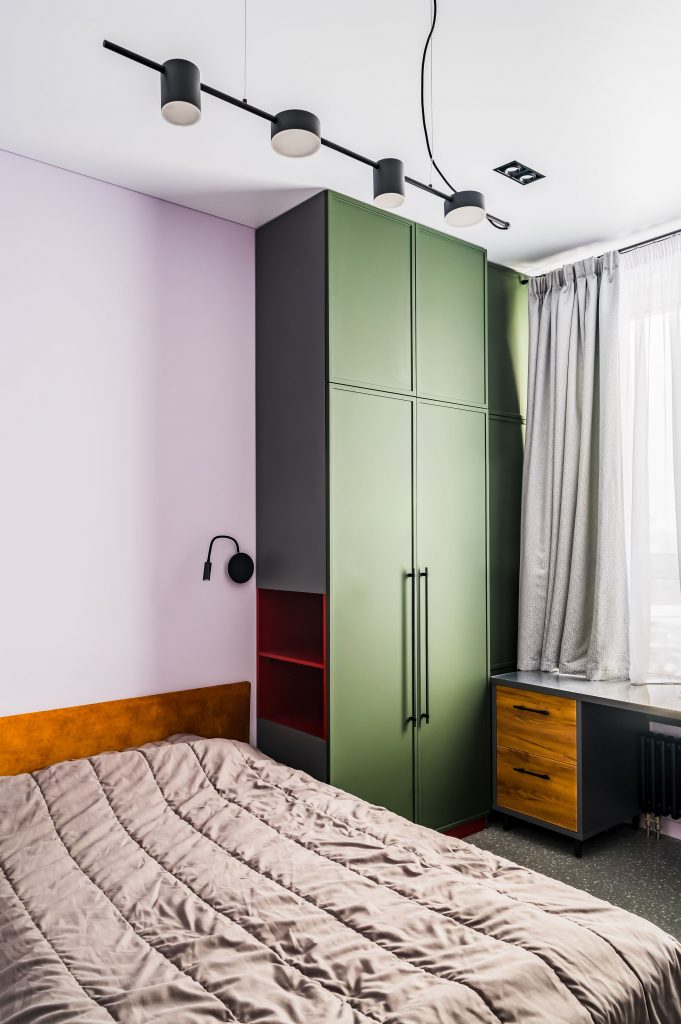 Ремонт двухкомнатной квартиры с меблировкой от компании Domeo, с интерьером преимущественно в ярких тонах с добавление светлых элементов, с прихожей, кухней, двумя спальнями и двумя санузлами