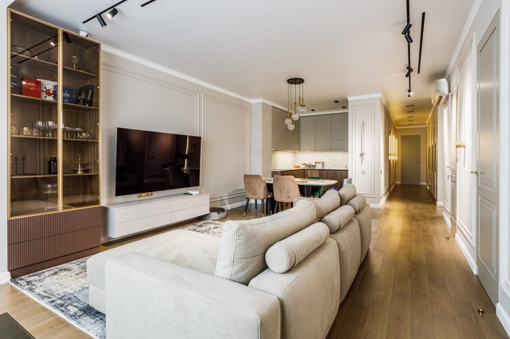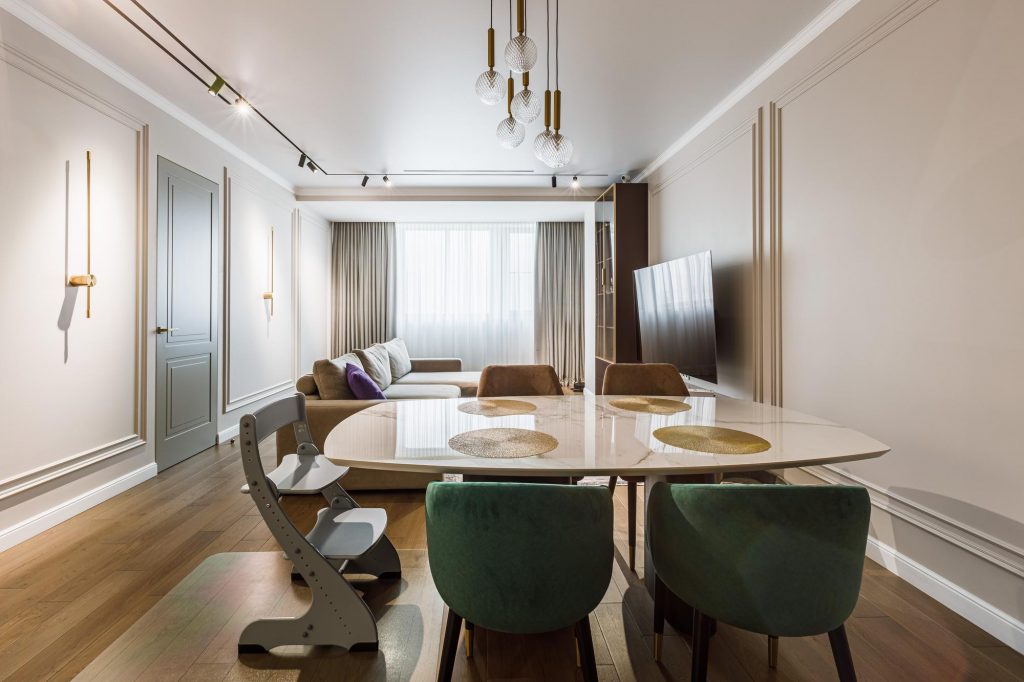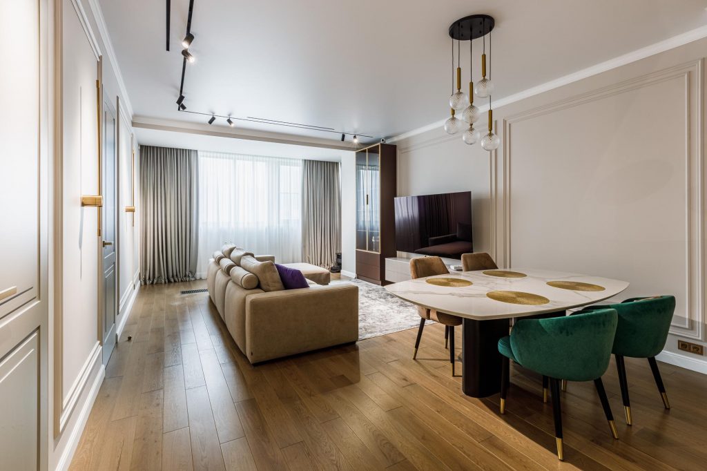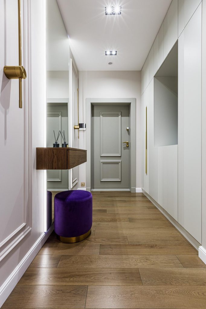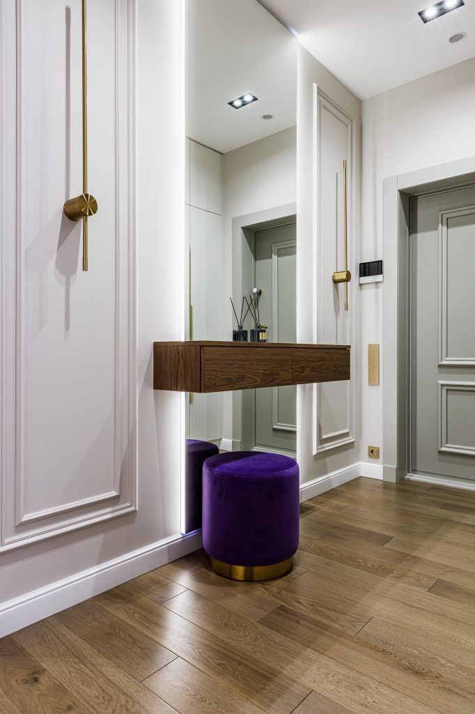 Квартира в стиле неоклассика в спокойных тонах с яркими акцентами