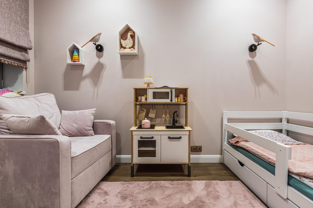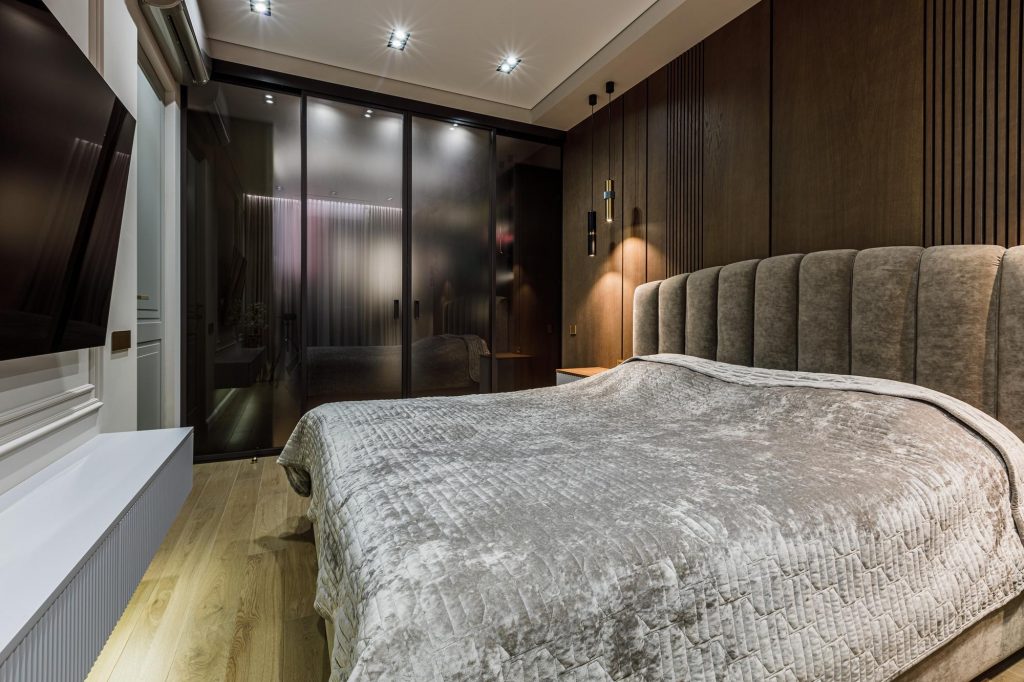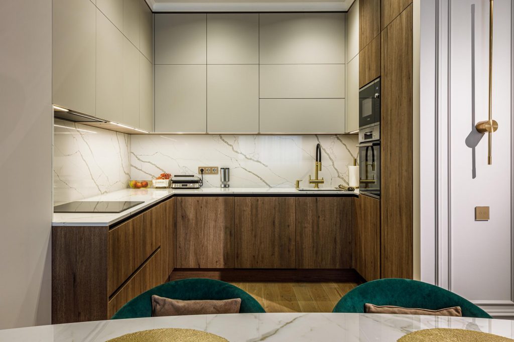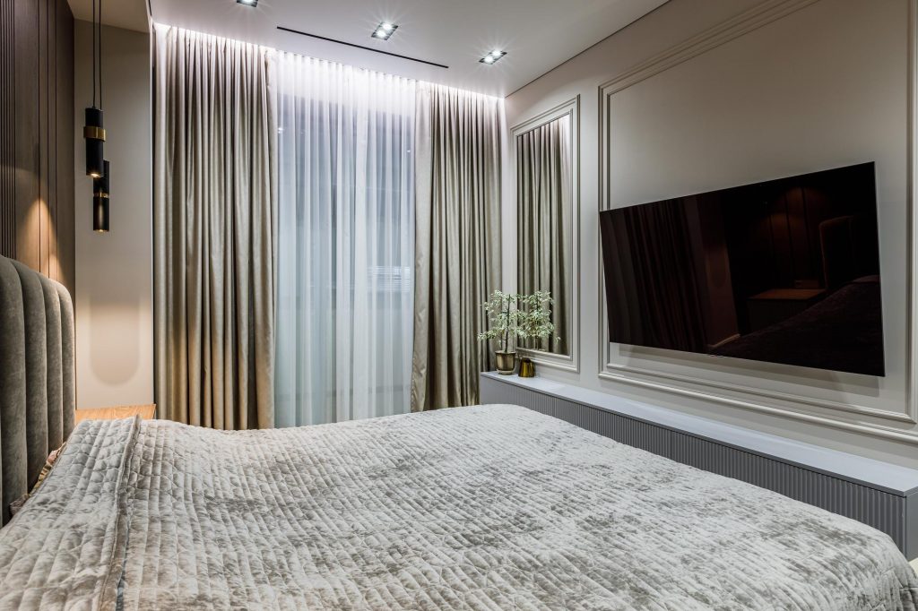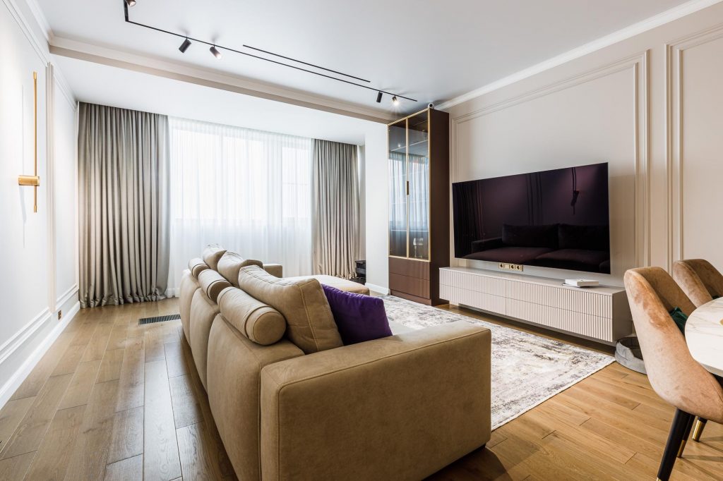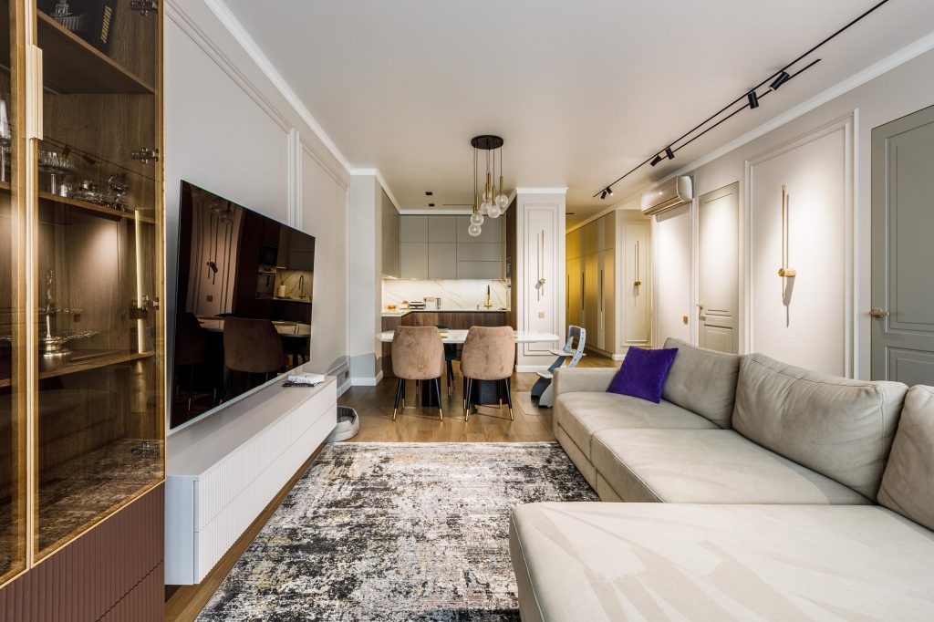 Квартира в стиле неоклассика в спокойных тонах с яркими акцентами