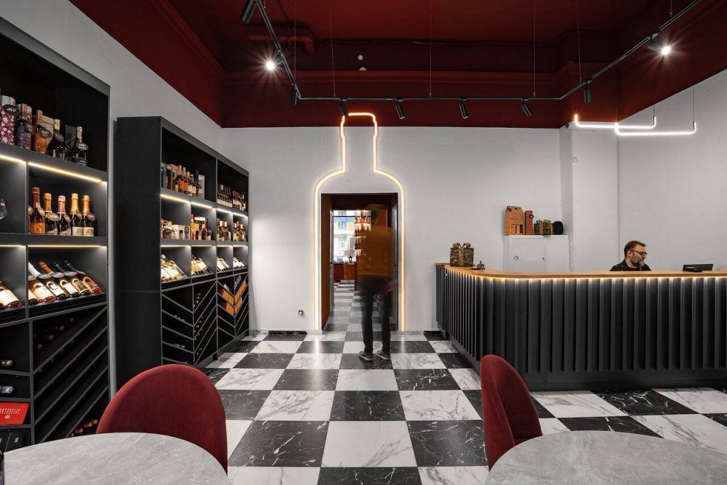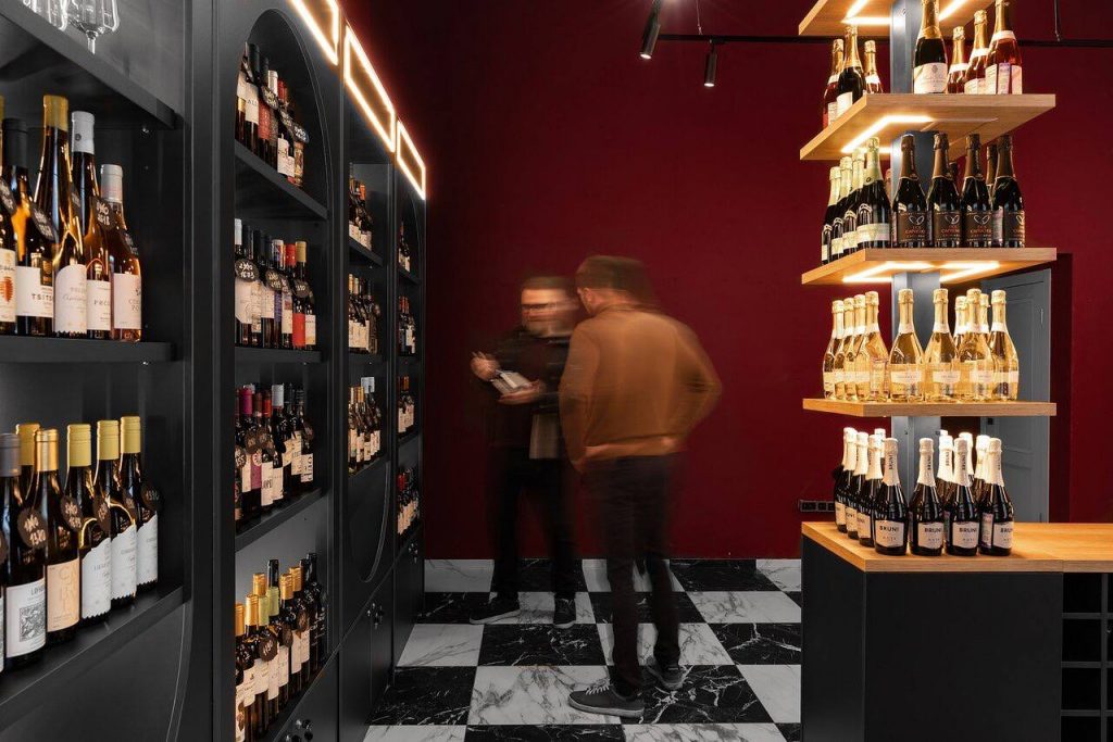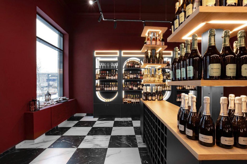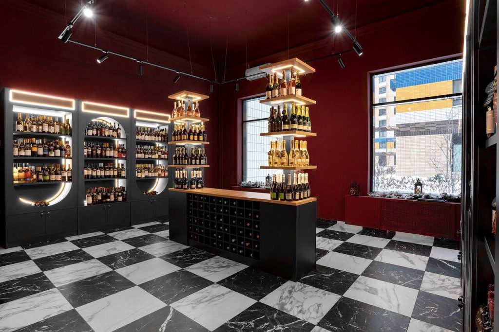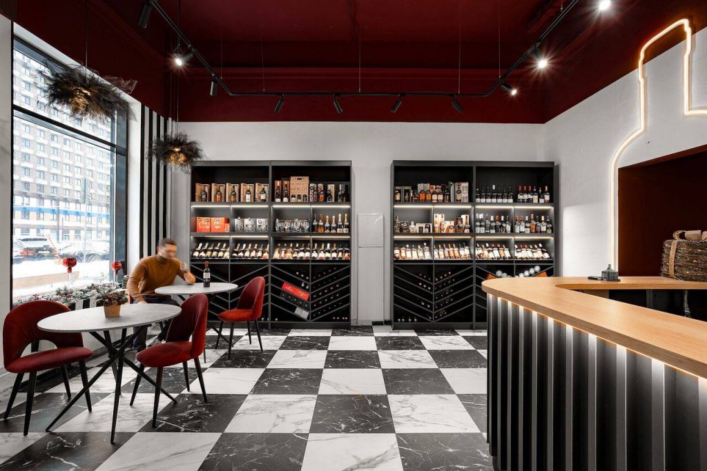 Ремонт винного магазина с меблировкой и изготовлением мебели от Domeo, в стиле, вдохновленном мультфильмом "Алиса в стране чудес", с двумя просторными залами, зонами дегустации и отдыха