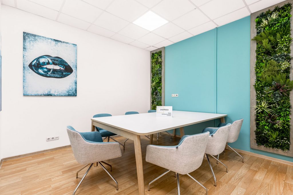 Ремонт офиса с меблировкой и изготовлением мебели от Domeo, с использованием решения сделать его мобильным, что позволит с легкостью демонтировать и перевезти все в другое помещение, если в этом будет необходимость
