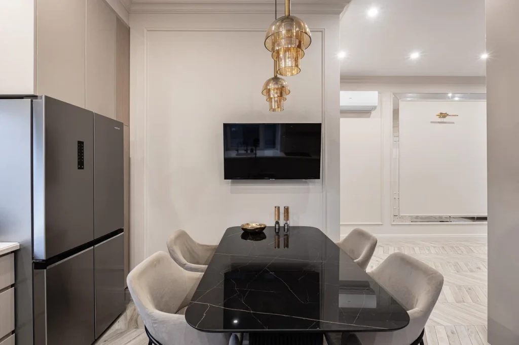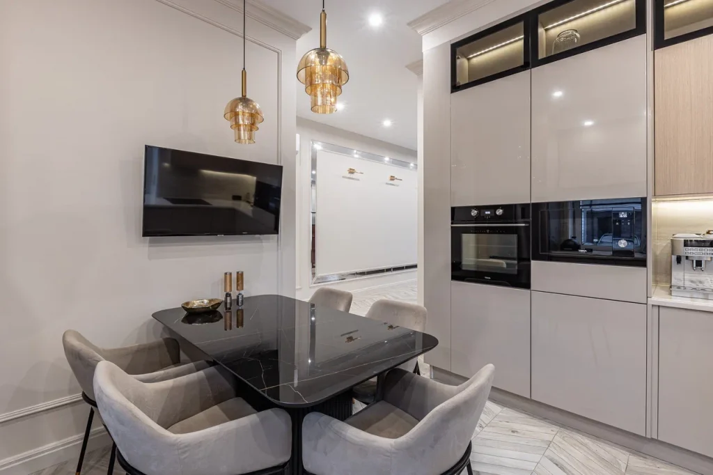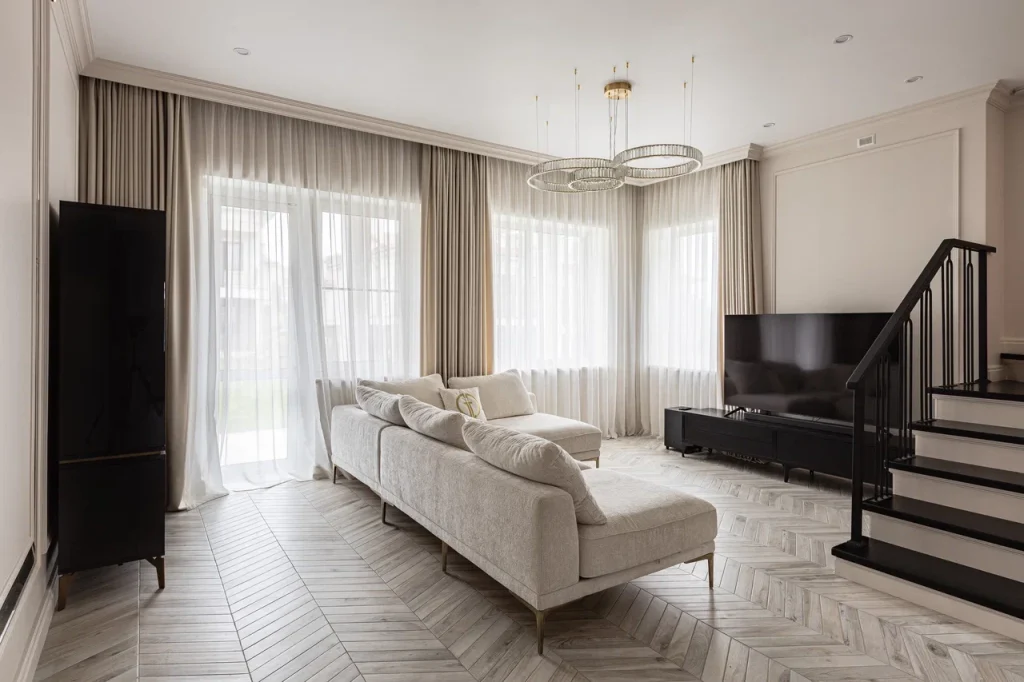 Ремонт таунхауса для настоящих перфекционистов - семейной пары с двумя детьми, с меблировкой и изготовлением мебели от Domeo, с прихожей, кухней, гостиной, мастер-спальней, двумя детскими комнатами и двумя санузлами