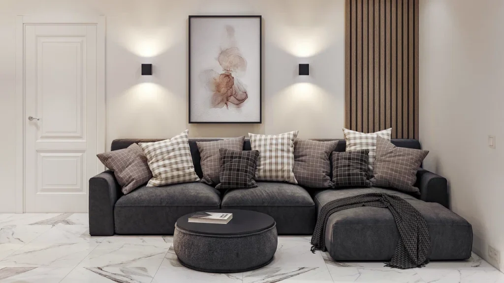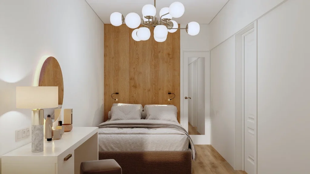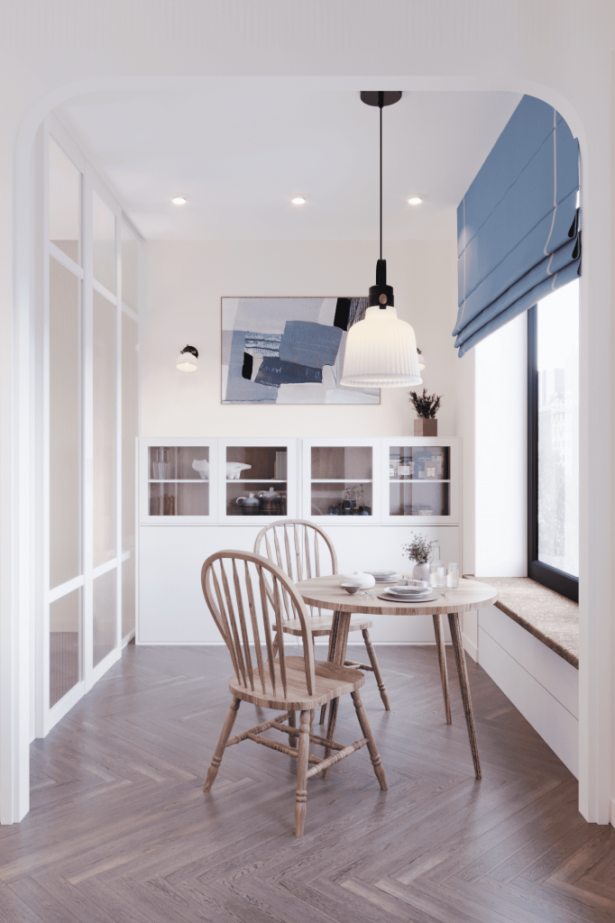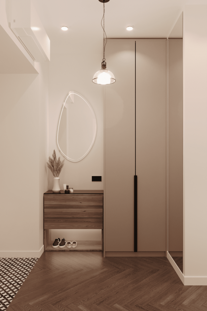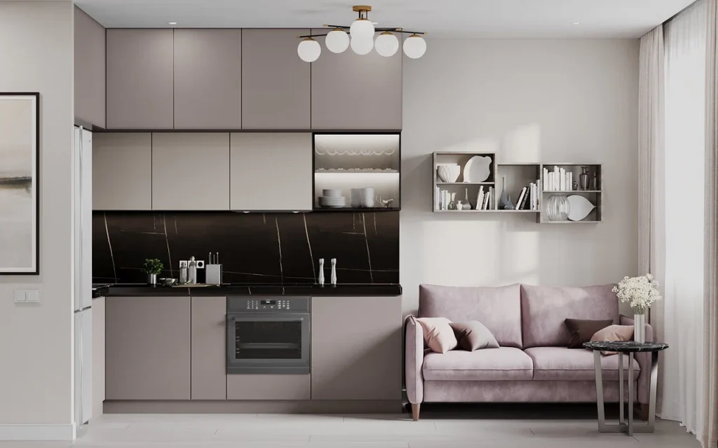 Пришли в Domeo с задачей сделать нашу квартиру 43 квадратных метра, выходящую на север, светлой и уютной. Хотелось легкости, не перегруженности мебелью, комфорта и современных решений. Проект, предложенный дизайнером, понравился. Несколько необычных деталей, вроде раздвижных дверей между спальней и гостиной, расположение раковины у стены с дверью, придавали квартире изюминку. Смета нас не повергла в ужас, договор подписали. Проект требовал небольшой перепланировки, нам не пришлось никуда ездить, сотрудники фирмы все сами оформили по доверенности. Ремонт длился полгода. Работа проделана титаническая, потому что квартира была убита в хлам прежними владельцами. Менялось абсолютно все, включая проводку и батареи. Была сделана многоуровневая система освещения, подключенная к системе ""умный дом"". Если на стадии проекта идея со светодиодной лентой на плинтусах в прихожей казалась сомнительной, теперь оценили. Вообще в проекте много ""фишек"", которые привлекают внимание. Темная затирка у плитки, светильники в гостиной, двери сливающиеся со стенами, отсутствие плинтусов.