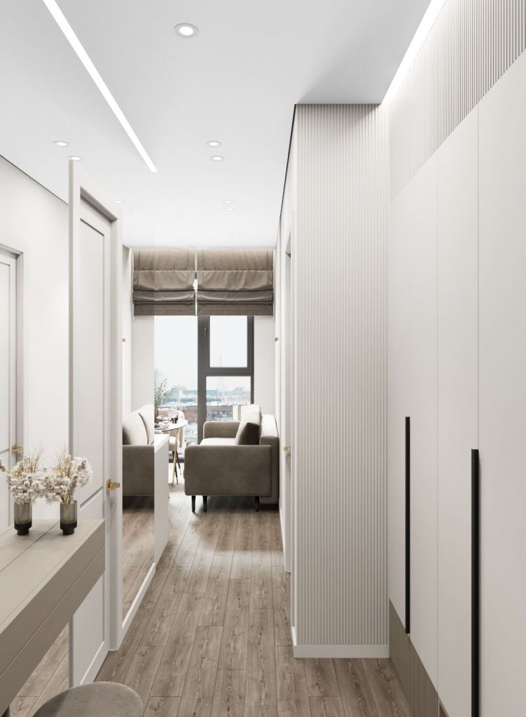 Используем умные решения для хранения, компактную мебель и зеркала, визуально расширяющие пространство.