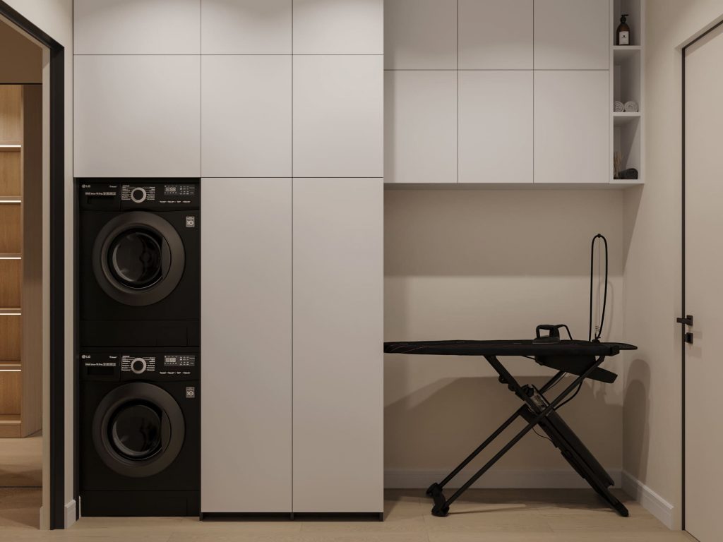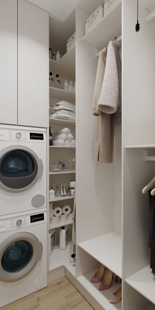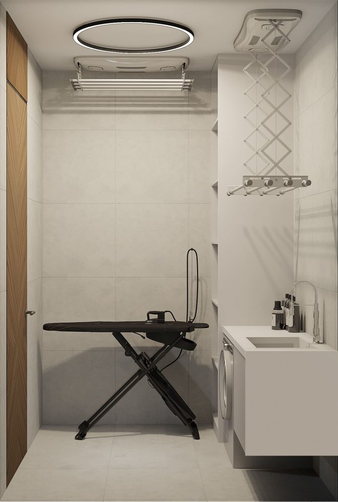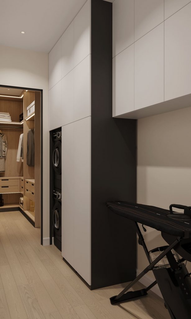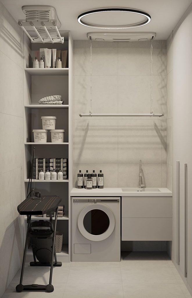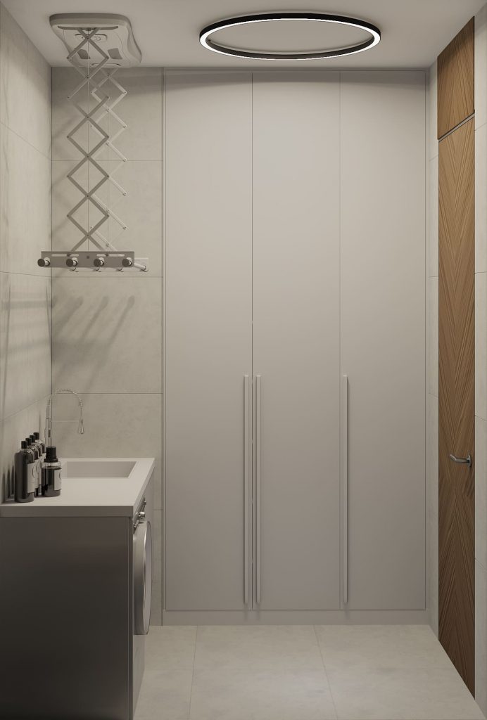 Мы создаем четкое зонирование пространства: зона стирки, зона сушки, зона глажки, зона хранения – все под рукой и на своем месте. - Вместительные системы хранения: