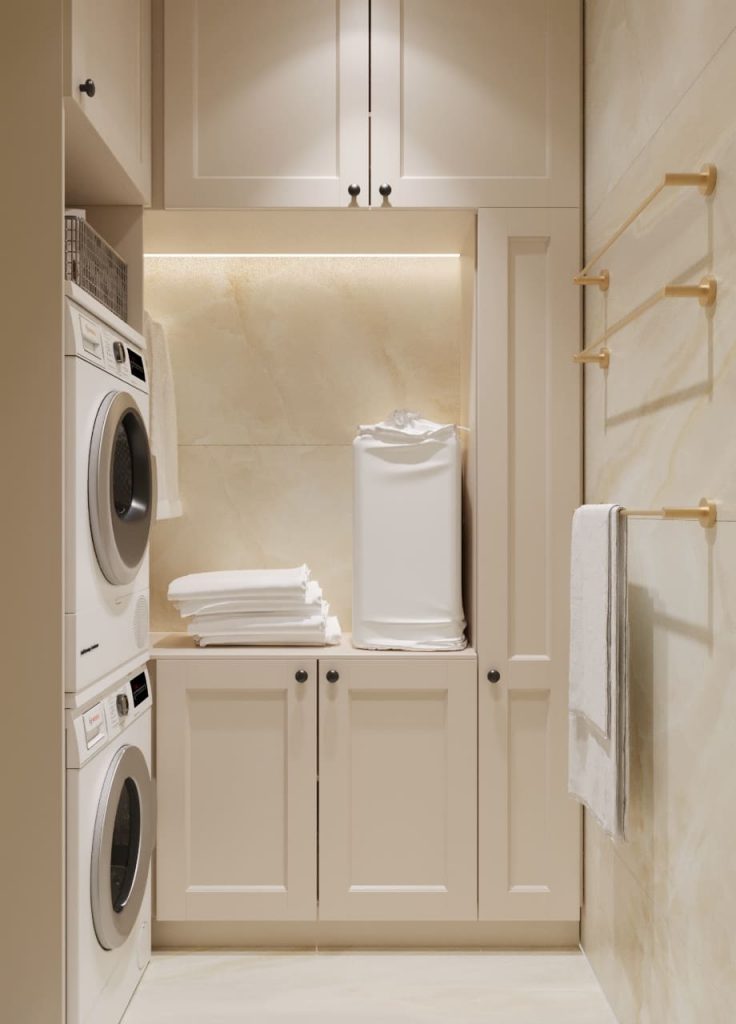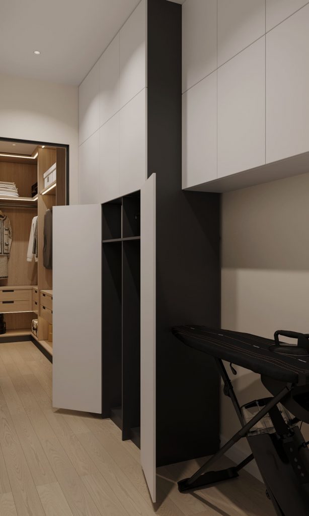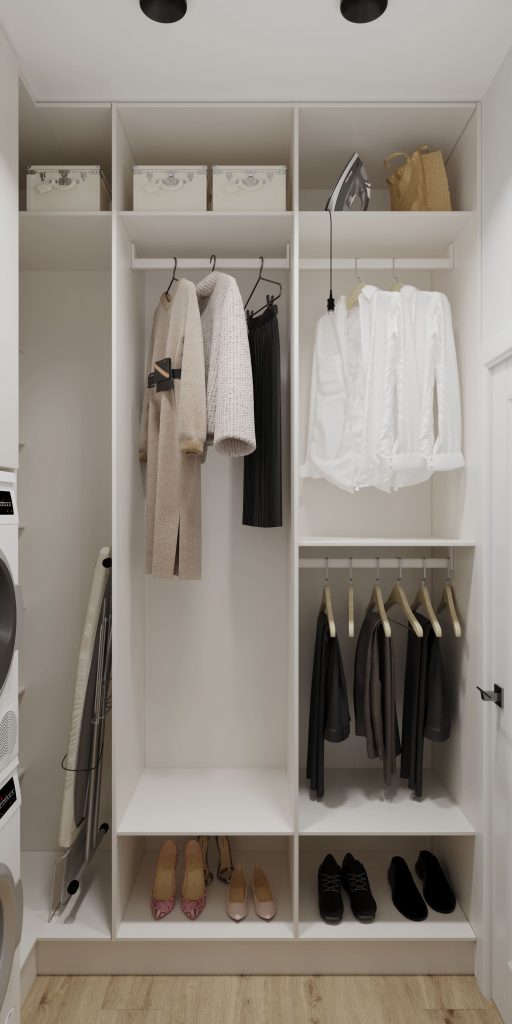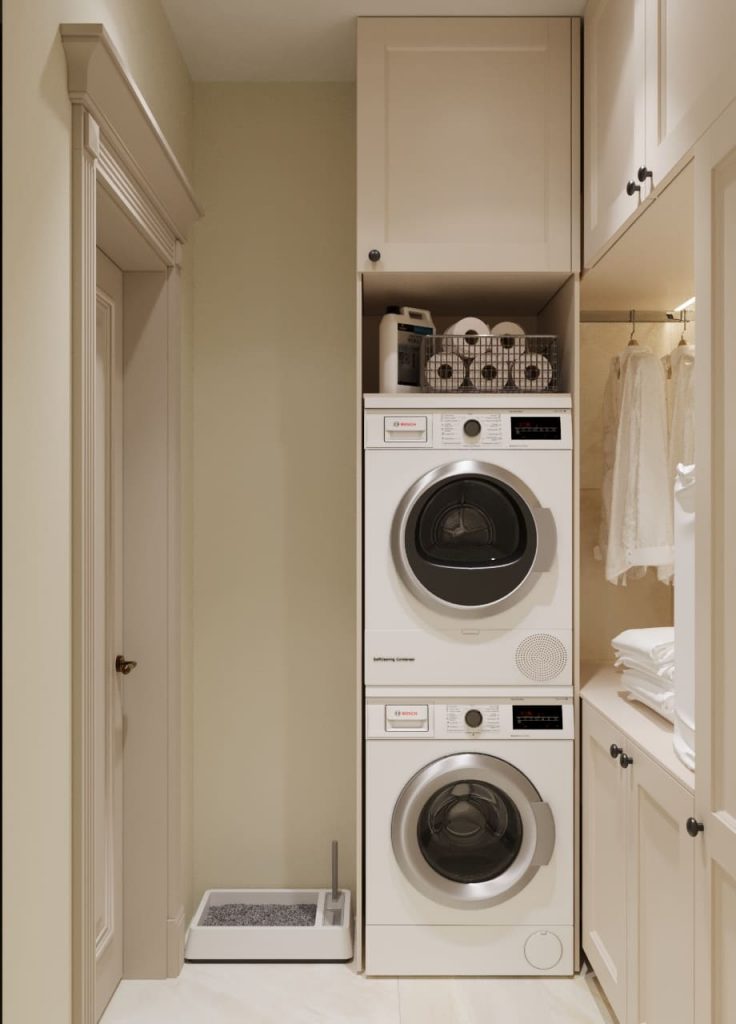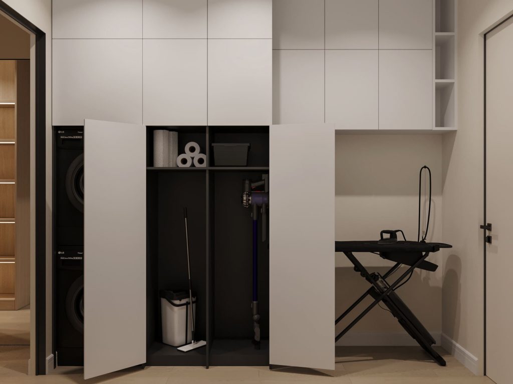 Мы создаем четкое зонирование пространства: зона стирки, зона сушки, зона глажки, зона хранения – все под рукой и на своем месте. - Вместительные системы хранения:
