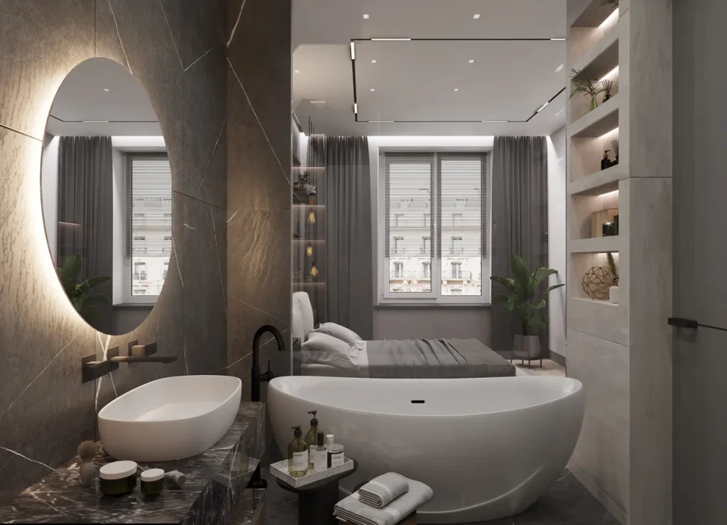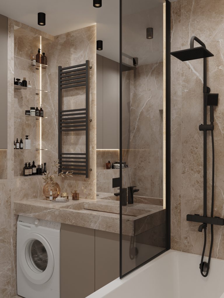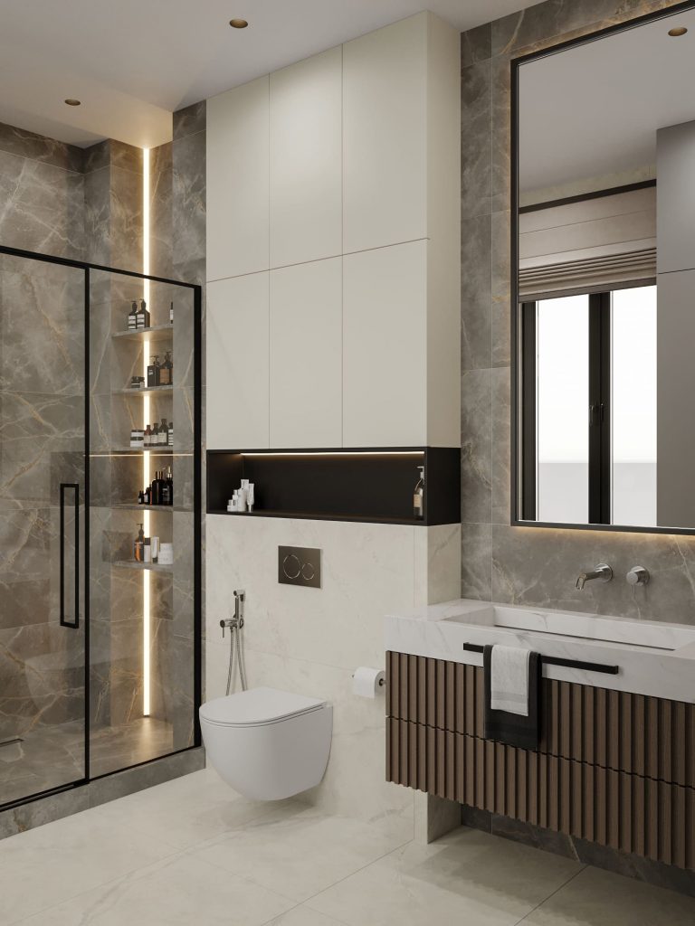 Качественный и долговечный ремонт ванной комнаты в новостройках под ключ, с закупкой и доставкой материалов, а также установкой сантехники и аксессуаров.
