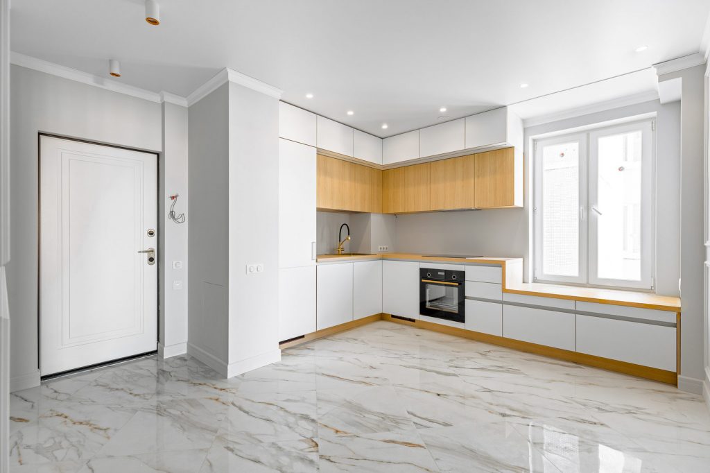 - Керамогранит – более прочный и плотный материал, который имитирует натуральный камень, дерево, бетон и другие текстуры. Он устойчив к влаге, механическим повреждениям и перепадам температуры. Среди его плюсов – высокая прочность, морозостойкость и износоустойчивость.